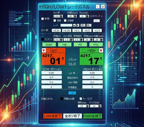 注文執行、ポジション管理、多彩な決済戦略、高度な相場分析といった、取引に必要なあらゆる機能を一つの洗練されたGUIパネルに集約したツールです。