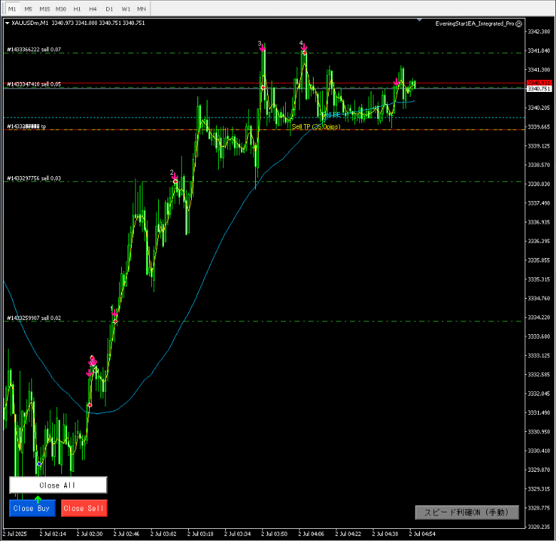 HangPong Sep 2025「EveningStar1EA Integrated Pro」は、複数のテクニカル指標を組み合わせて市場の状況を分析し、売買のタイミングを判断します。具体的には、次のような要素を考慮しています。
