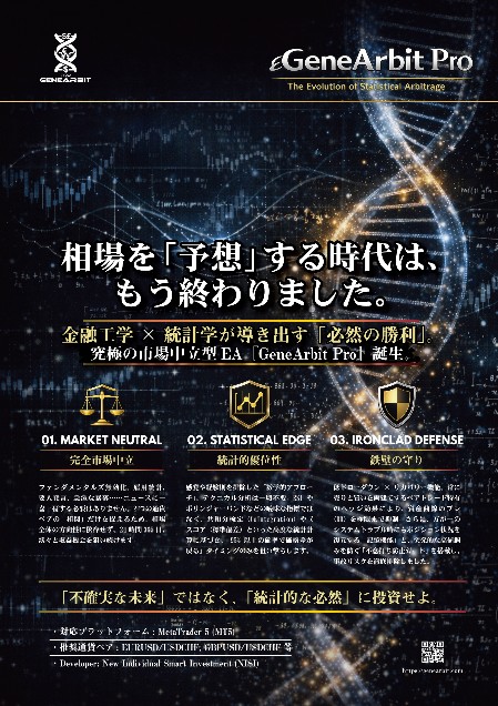 『GeneArbit Pro』は、FX をギャンブルから「投資」へと昇華させるツールです。